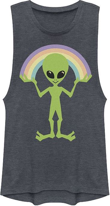 Juniors' Alien Creating A Rainbow Graphic Muscle Tank Top, Girl's, Size: XL, Denim Grey