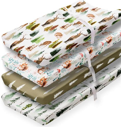 4 Pack Changing Pad Covers Woodland Forest Animals Wood Neutral Unisex Fitted Baby Changing Pad Cover Set For Baby Boys Or Girls (Cartoon Fox)