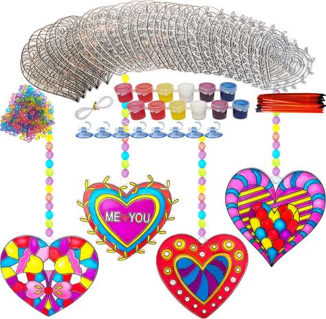 Ayhuhra 28 Sets Heart Suncatchers For Windows Valentine's Day Suncatcher Craft Kits DIY Window Paint Art Heart Sun Catchers For Classroom Art Craft