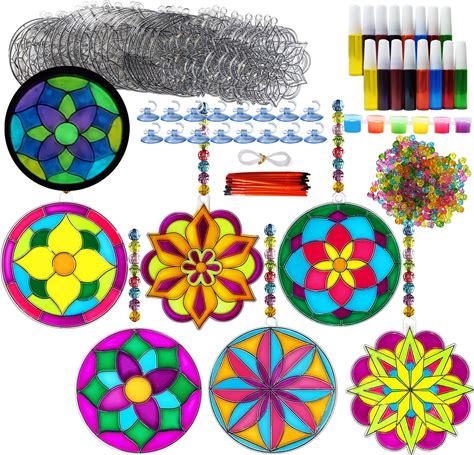 Ayhuhra 30 Sets Mandala Suncatchers Craft Kits Stained Glass DIY Window Paint Art Flower Suncatcher Kits For Spring Summer Party Activities Art