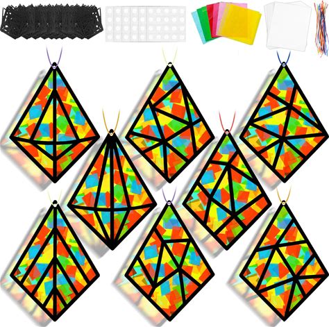 Lonfliness 30 Sets Sunday Kite Suncatcher Crafts Spring DIY Window Stain Glass Effect Paper Home Decorations VBS Religious Easter Arts Crafts Creative