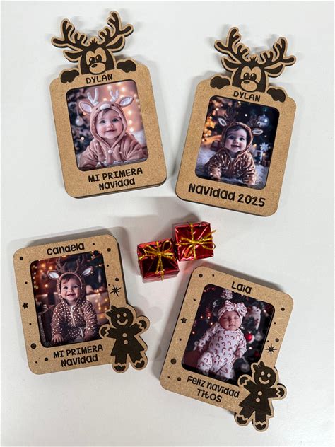 Personalized Christmas Photo Frame - Reindeer Or Gingerbread Man - Magnetic - Photo - Gift For Family - Gift For Grandparents - Gift For Godmother