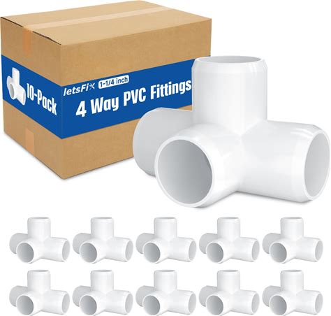 Letsfix 1-1/4" PVC Fittings 4 Way (10-Pack) Furniture Grade, Elbow Connector, Heavy Duty For DIY Furniture, Frames, UV Resistant - Compatible With 1-1
