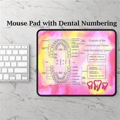 Pink Tooth Numbering Diagram Mousepad For Dental Offices & Students. Dental Office Supplies, Dental Student Graduation Gift, Boss Day Gift