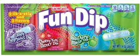 Fun Dip Grape, Apple, & Cherry Sour Candy Variety Pack,1.4Ozfun Dip 4 Count Classic Lik M Aid Sticks