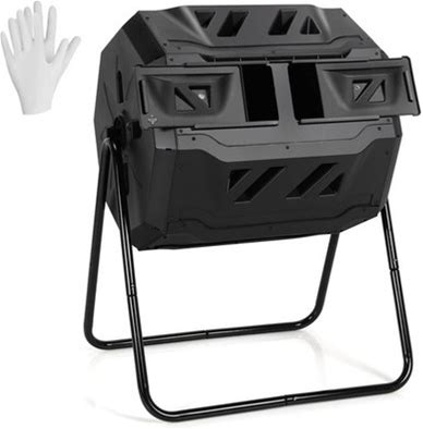 Compost Tumbler, 360 Rotating Dual Chamber Outdoor Garden 43 Gallon Composter | Forest Green | Steel