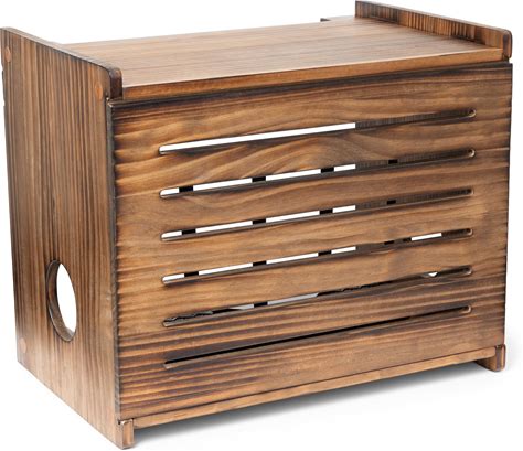 Wooden Wifi Router Storage Box - Deluxe Wall Mountable Decorative Modem Shelf Hider Cover With Cable Management System - Rustic Home Organization