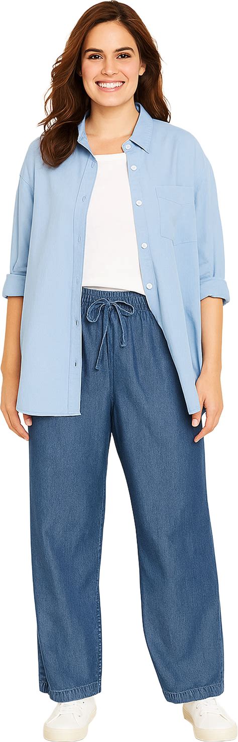 Plus Size Women's Wide-Leg Drawstring Denim Pants By Woman Within In Stonewash (Size 38 W)