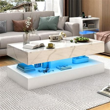 U-Can LED Coffee Table With Storage, Modern Center Table With 2 Drawers And Display Shelves, Accent Furniture With LED Lights For Living Room,Black